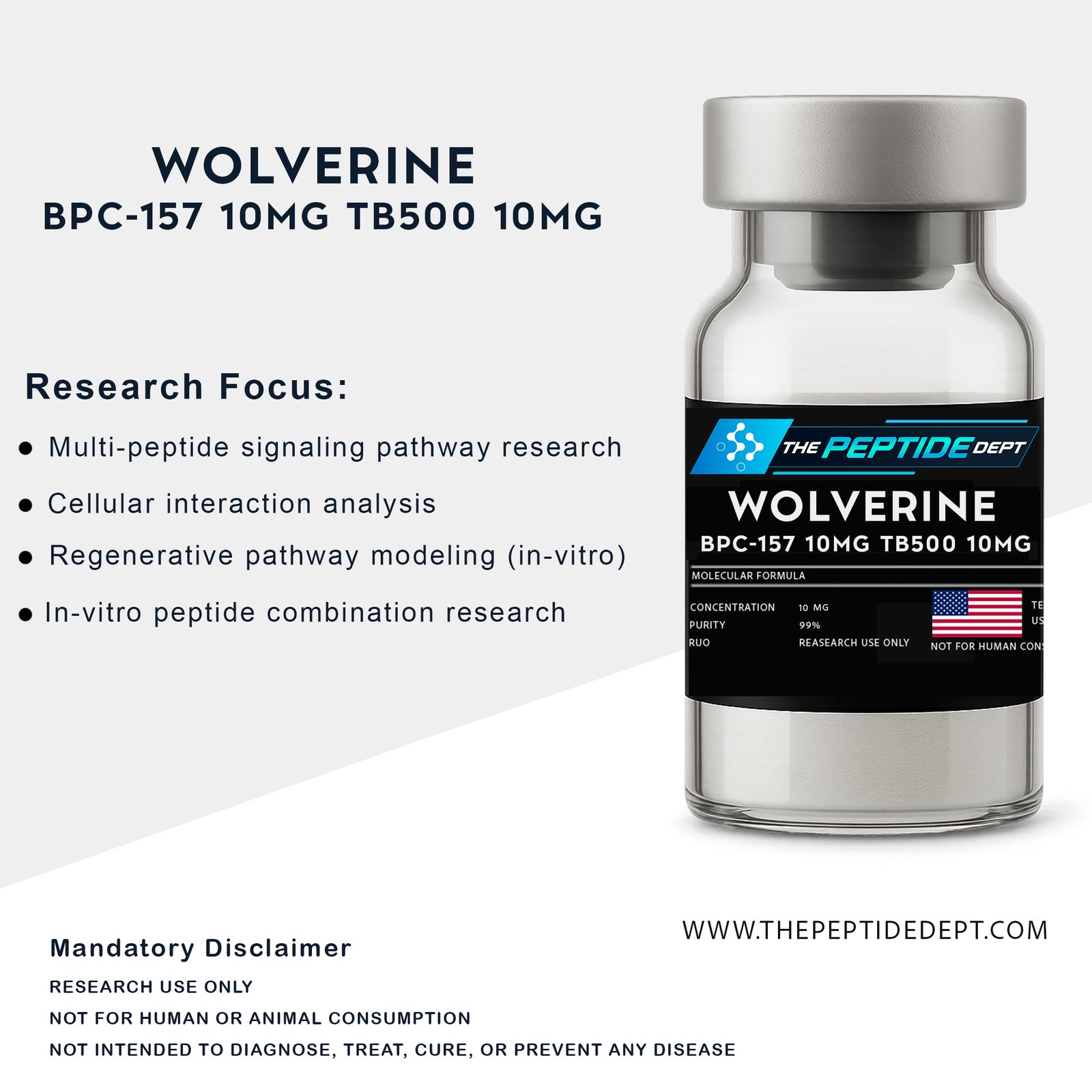 Wolverine is a peptide blend supplied exclusively for laboratory research use. This product is intended for qualified researchers conducting controlled experimental and analytical studies in regulated laboratory environments. Each batch is supported by quality documentation to verify identity and purity. Not intended for human or animal consumption, clinical use, diagnostic use, or therapeutic applications.